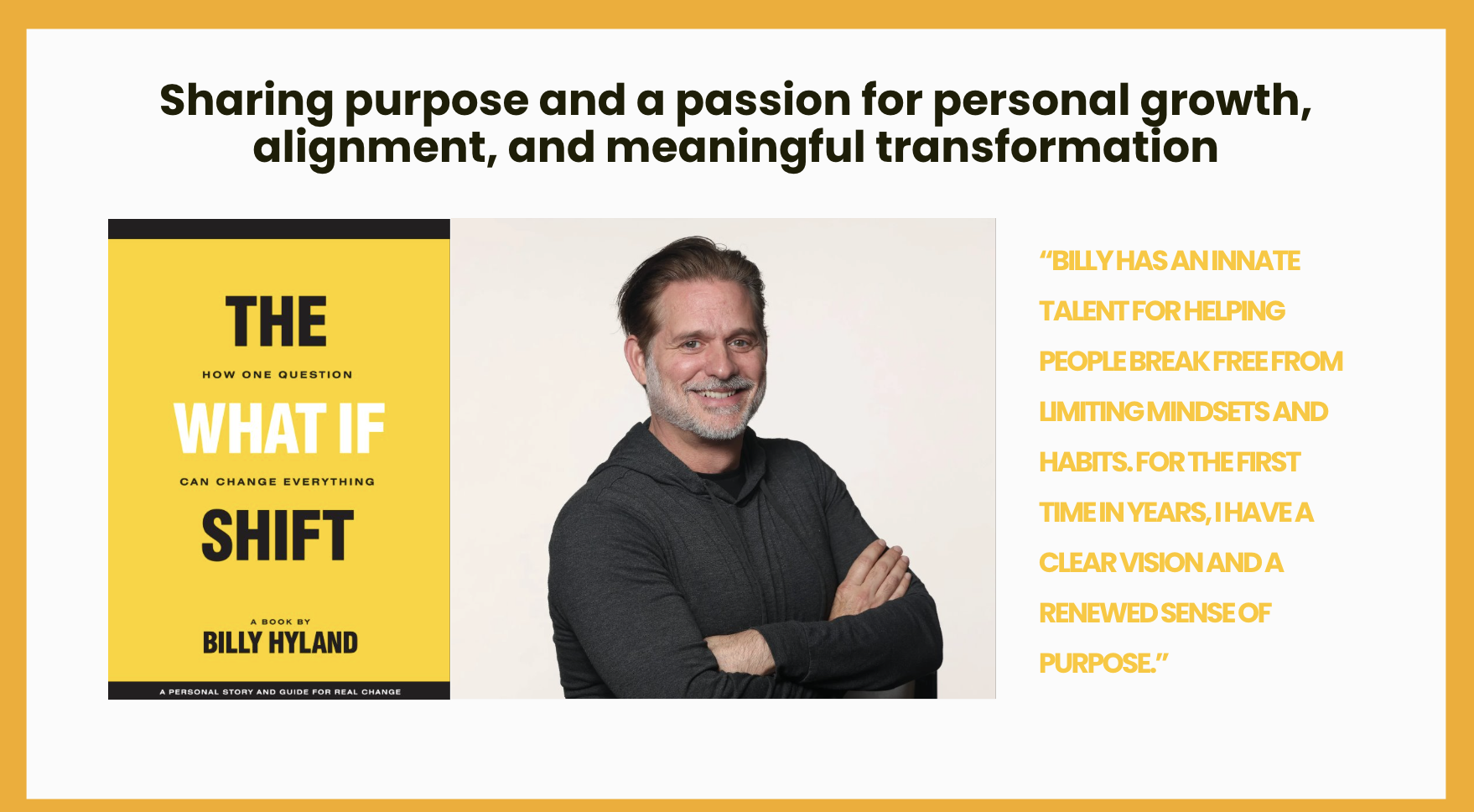 Billy Hyland is an award-winning creative leader, certified high-performance coach, author of The What If Shift, and founder of Level Positive, a personal growth platform dedicated to helping people live bold and lead with soul.